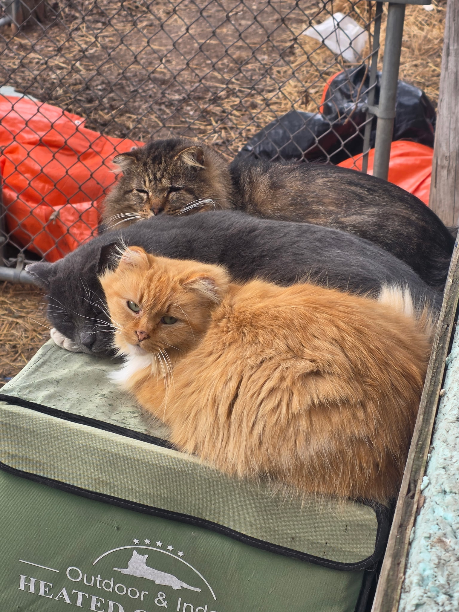 While many started as scared, hungry, fighting for their life in this world, they were captured and landed with us. We spent months, even years, socializing our cats to show them that they can trust people and live without fear of when their next meal will come and that people can be friendly and trusted.